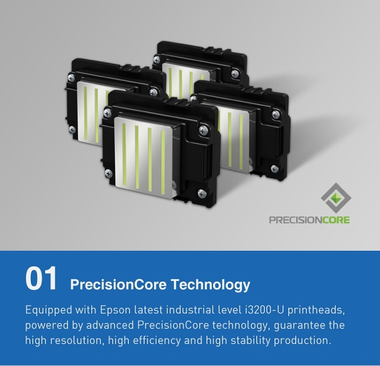 Printing Head | 4 × Epson i3200-U | 4 × Epson i3200-U | 2 × Epson i3200-U (4 Heads available) | |