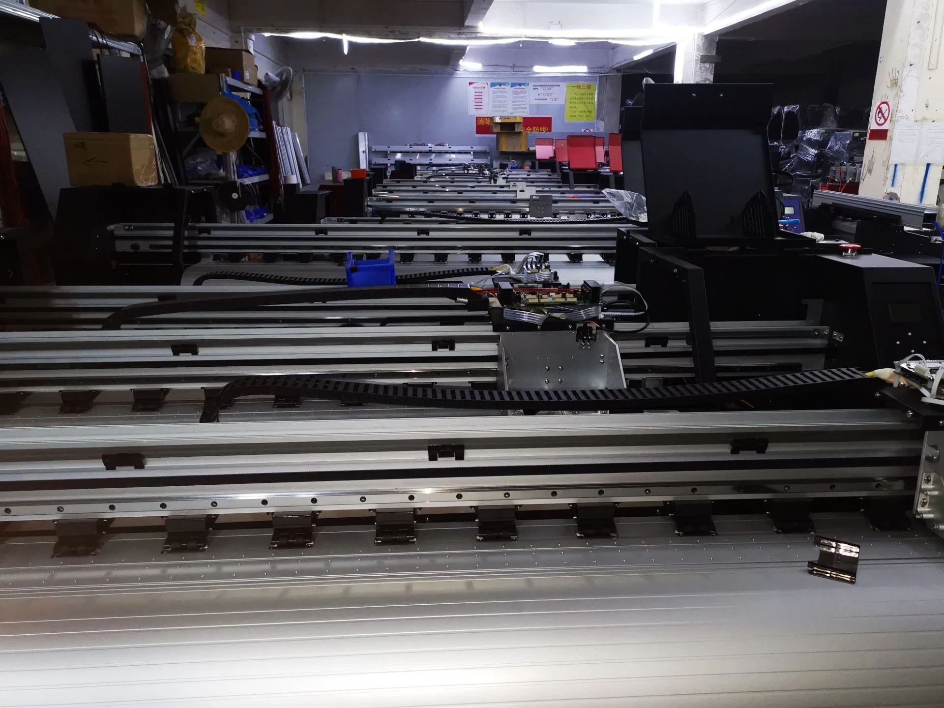 A1:All printers will be produced and tested well before packing, and the printheads will be installed well in the printer, and fixed the printer carriage on the printer beam, then the printer body will be fixed into the plywood box for long way shipping by sea, by air, by express or truck.