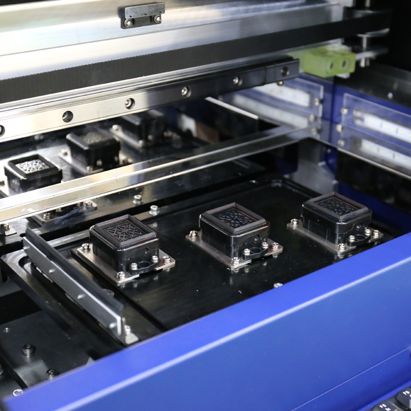 The height of the head nozzle independently developed can be adjusted arbitrarily, and it can flexibly respond to different thicknesses of printing materials. The anti-scratch-paper function on both sides of the small frame can reduce the damage of the nozzle caused by the paper tilting.