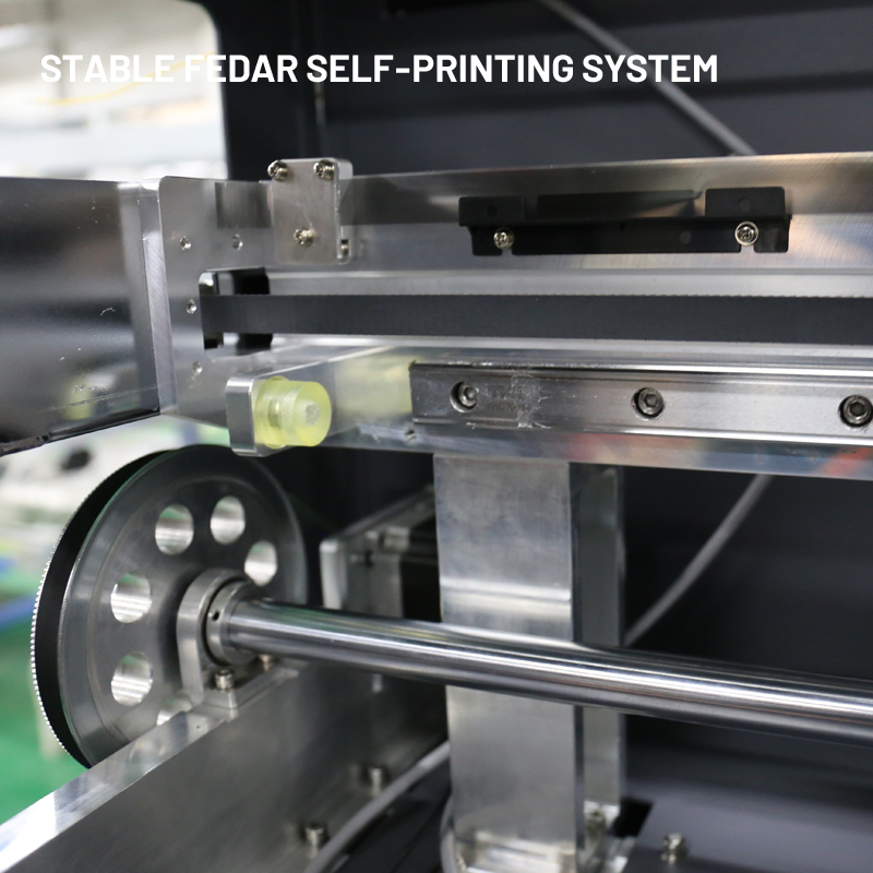The assembly precision of the machine printing platform is controlled within plus or minus 7.5 wires, which lays the foundation for high-precision and high-quality production. The overall honeycomb aluminum alloy platform is hard-oxidized on the surface and will not deform for a long time.