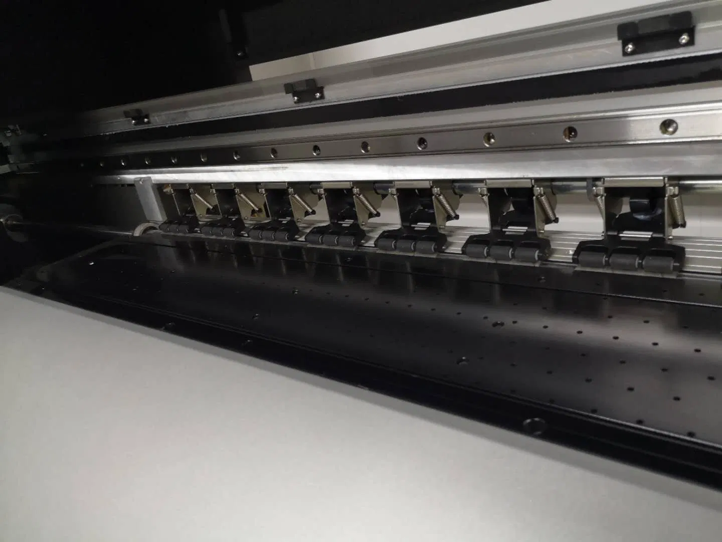 Equipped with EPSON DX5 and DX7 Piezo print head, variable drop printing, 1440 DPI high resolution output, unique two-dimensional eclosion function, eliminate the printing banding, improve the printing quality. original import bushless motor, High precision drive, Linear decoding, higher accuracy, the length error is smaller, improve the printing quality, and ensure the stable running.