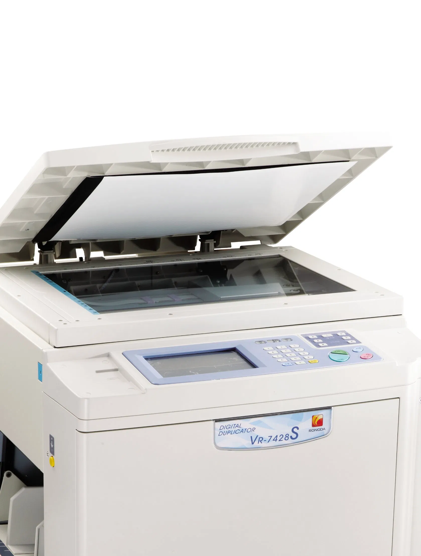 Rongda Digital DuplicatorVR-7428SEasy operation, high quality.· Large color LCD touch screen· 130 PPM print speed· Large paper-recieving capacity up to 1500 sheets· Scan resolution 600*600 DPI· Print resolution 400*600 DPI· U-disc mas......