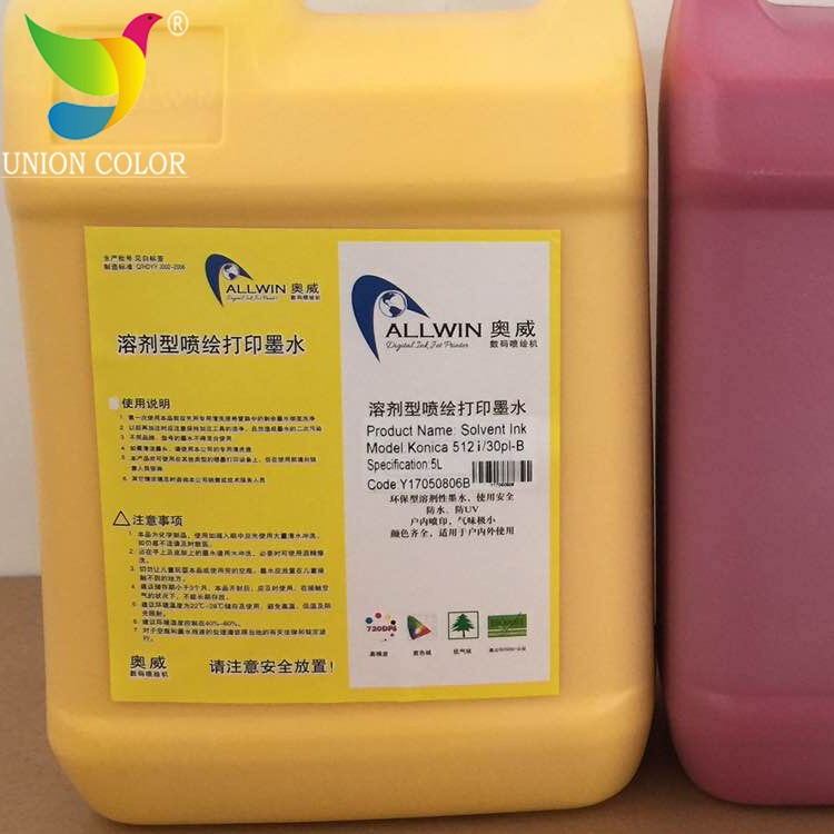 Prodct Describtion Allwin konica head 512i printing inks solvent ink from factorylow smell allwin ink for konica 512i 30pl printhead.1.solvent based ink,ultraviolet light pigmented ink that is applied to various printerswith konica printhead 512i 2.Wide color gamut and vivid color ,high climate-res......