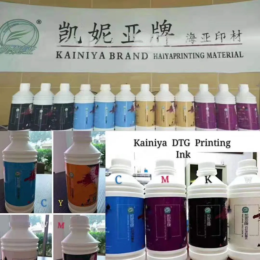 Product Description:DTG COLOR INK C/M/Y/KBasic InformationColor: CMYKAdvantages:1 Simple program: no need to pre-process, you can directly print the image2.Washable: After printing, it can be washed directly with washing powder, without fading3 Skin feeling: Like skin after print color on the cotton......