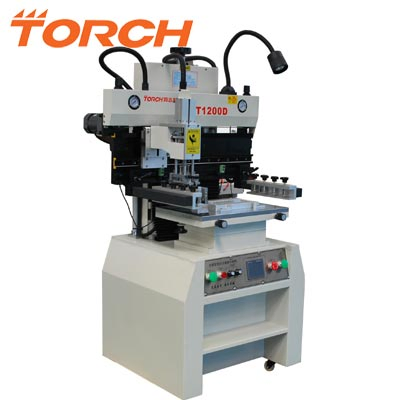T12000D is the most reasonable semiautomatic SMT printing machine with high accuracy. It is specially suitable for high-accuracy batch production or making templet. The PCB Plate is fixed on a work platform which is flexible. The work platform is the same with single and double sides' circuit board. The adjustments of the PCB plate and the movement of the work platform are driven by the linear square guide-tracks, cooperated together with a double-frequency motor. Therefore exact motion and high accuracy of repetitions can be ensured. It is now the optimal choice to take the place of full automatic printing machine and decrease the cost of the production maximally.
