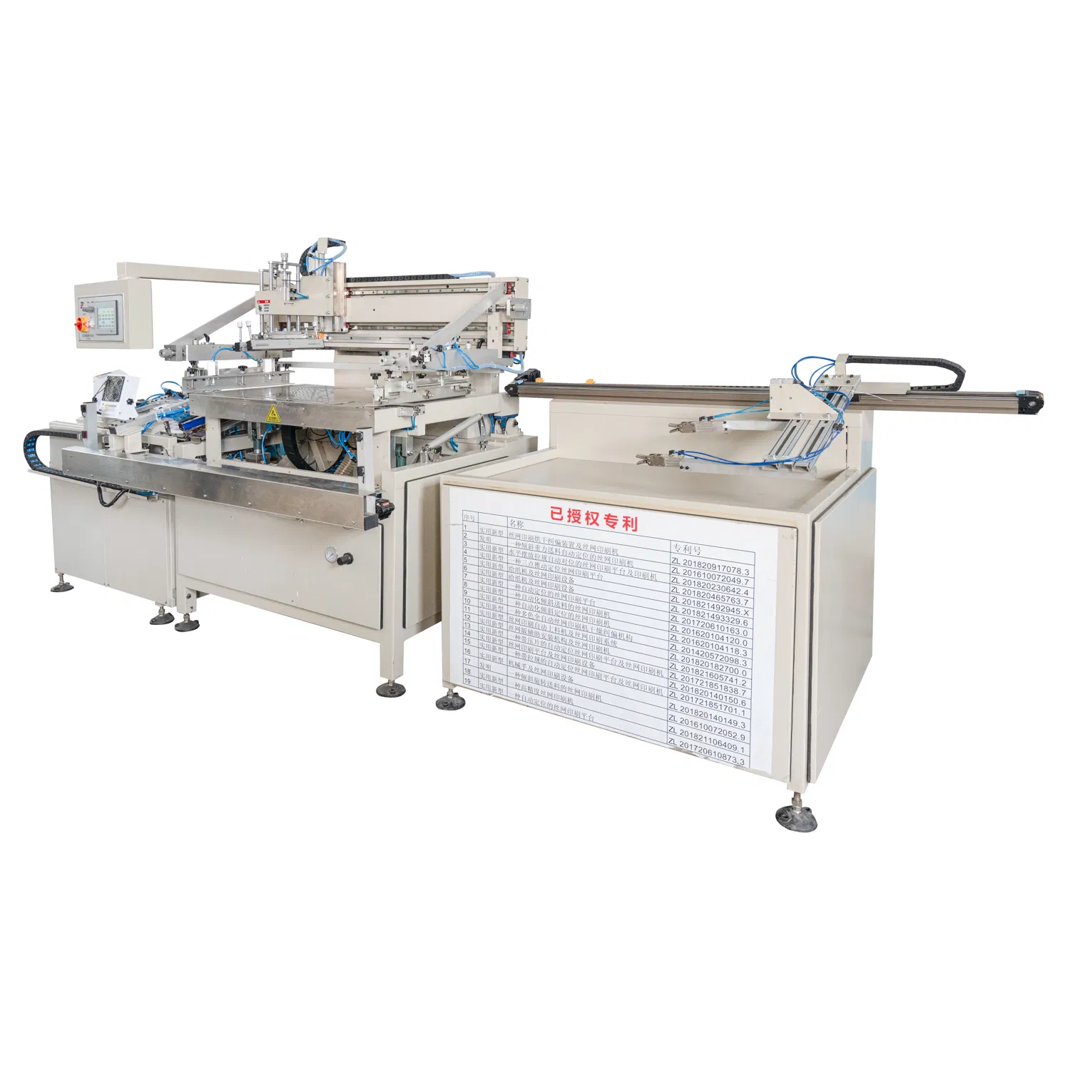 HY-H56 single sheet automatic screen printing machine Product Parameters Max. Printing Size500×650mmRepeatability<0.05mmWorkbench size590×860mmMax.frame size750×1030mmPrint thickness0~1mmMax. printing speed900pcs/hSqueegee skewness0~30ºScreen vertical and h......