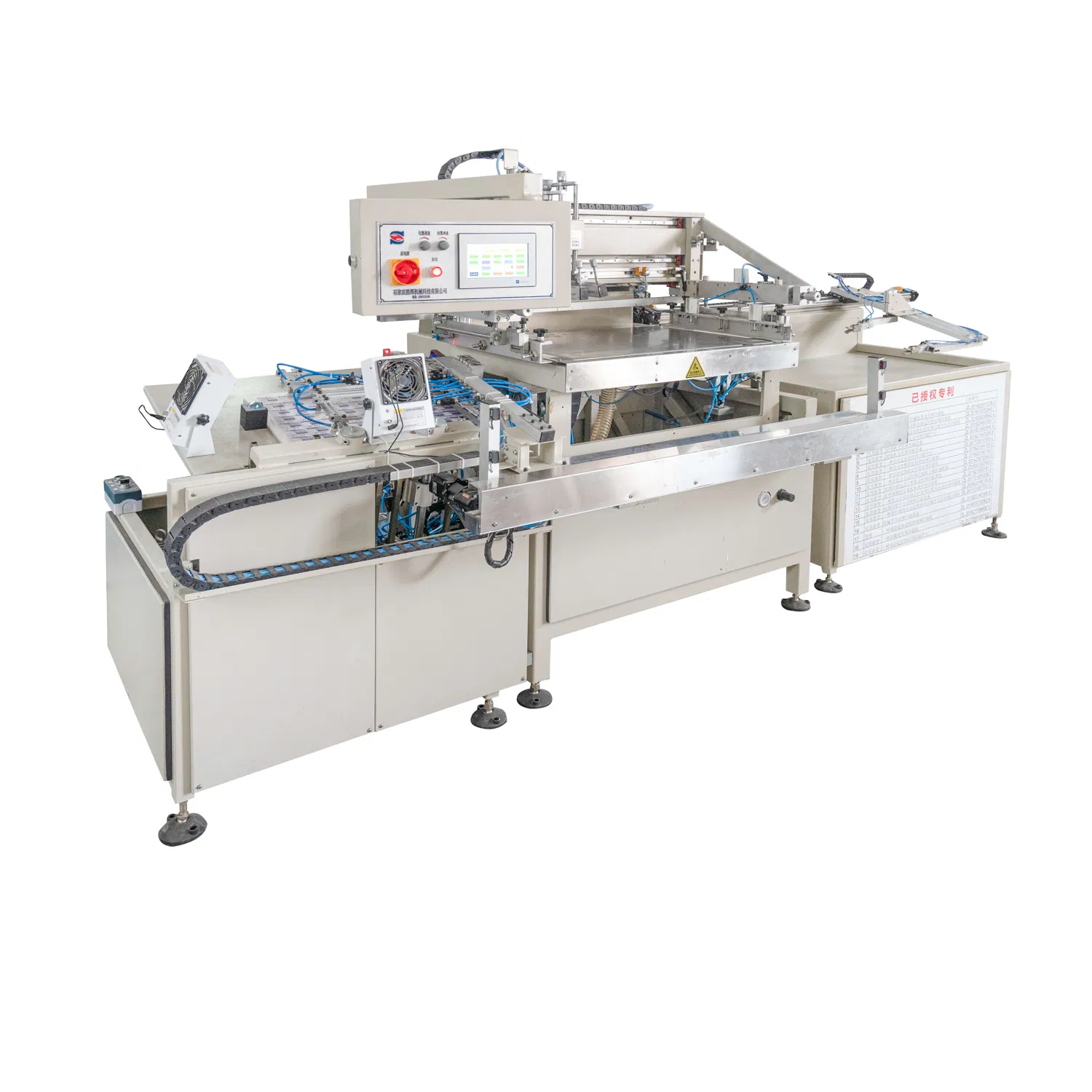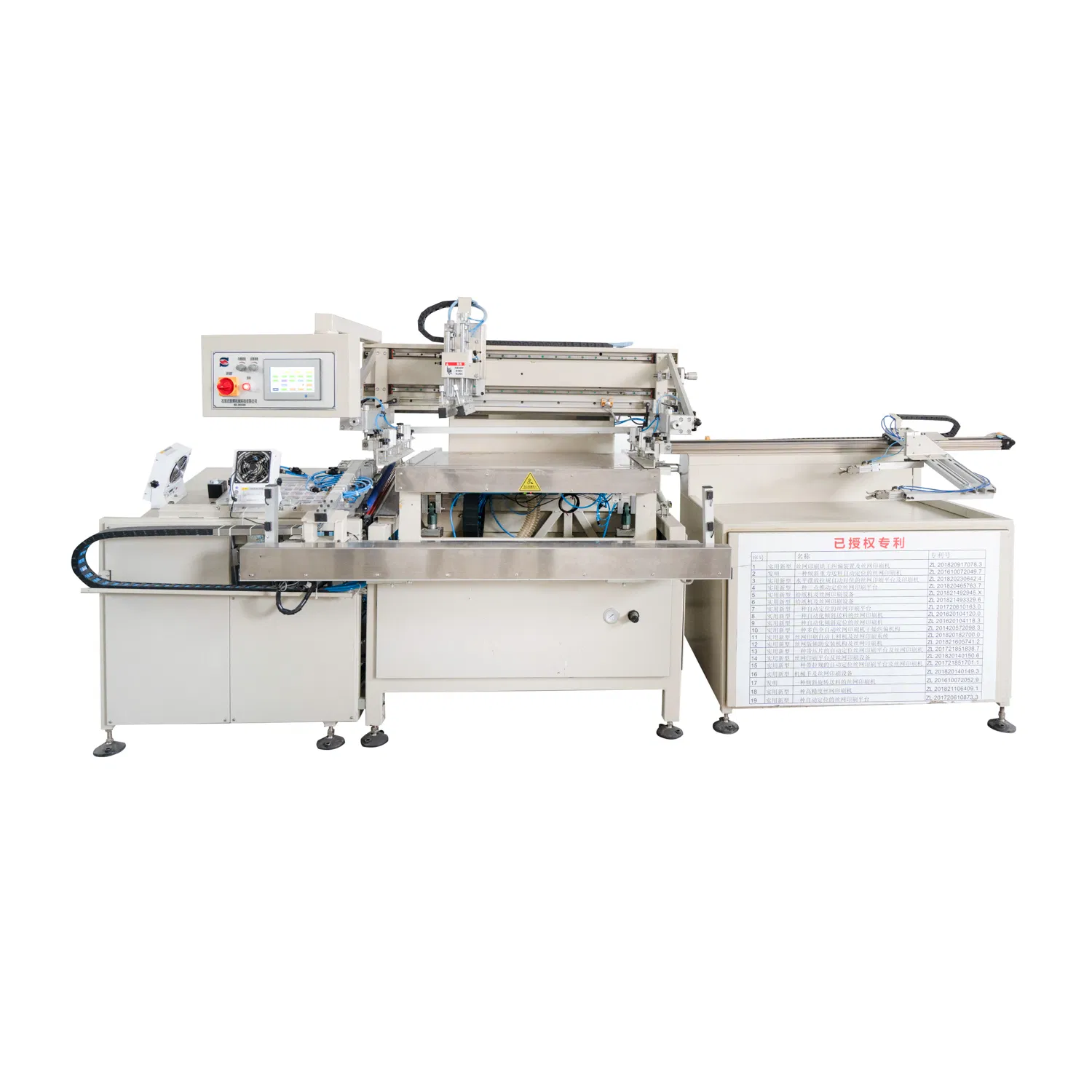 HY-H56 single sheet automatic screen printing machine Product Parameters Max. Printing Size500&times;650mmRepeatability<0.05mmWorkbench size590&times;860mmMax.frame size750&times;1030mmPrint thickness0~1mmMax. printing speed900pcs/hSqueegee skewness0~30&ordm;Screen vertical and h......