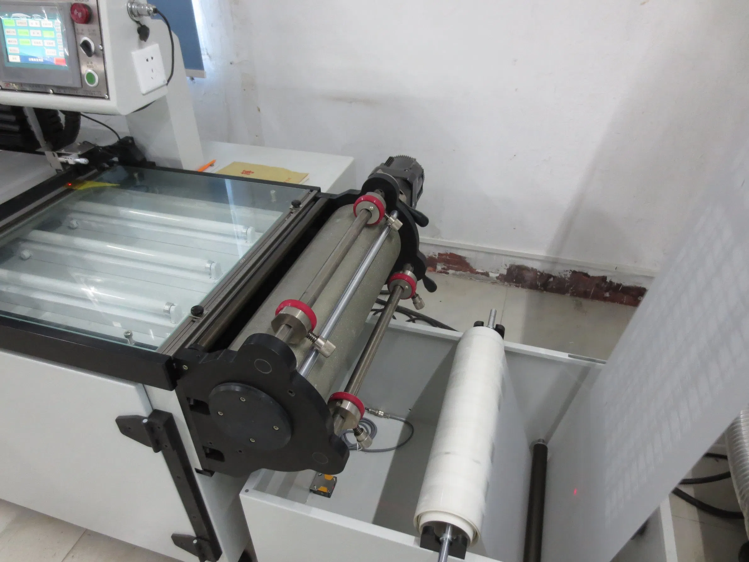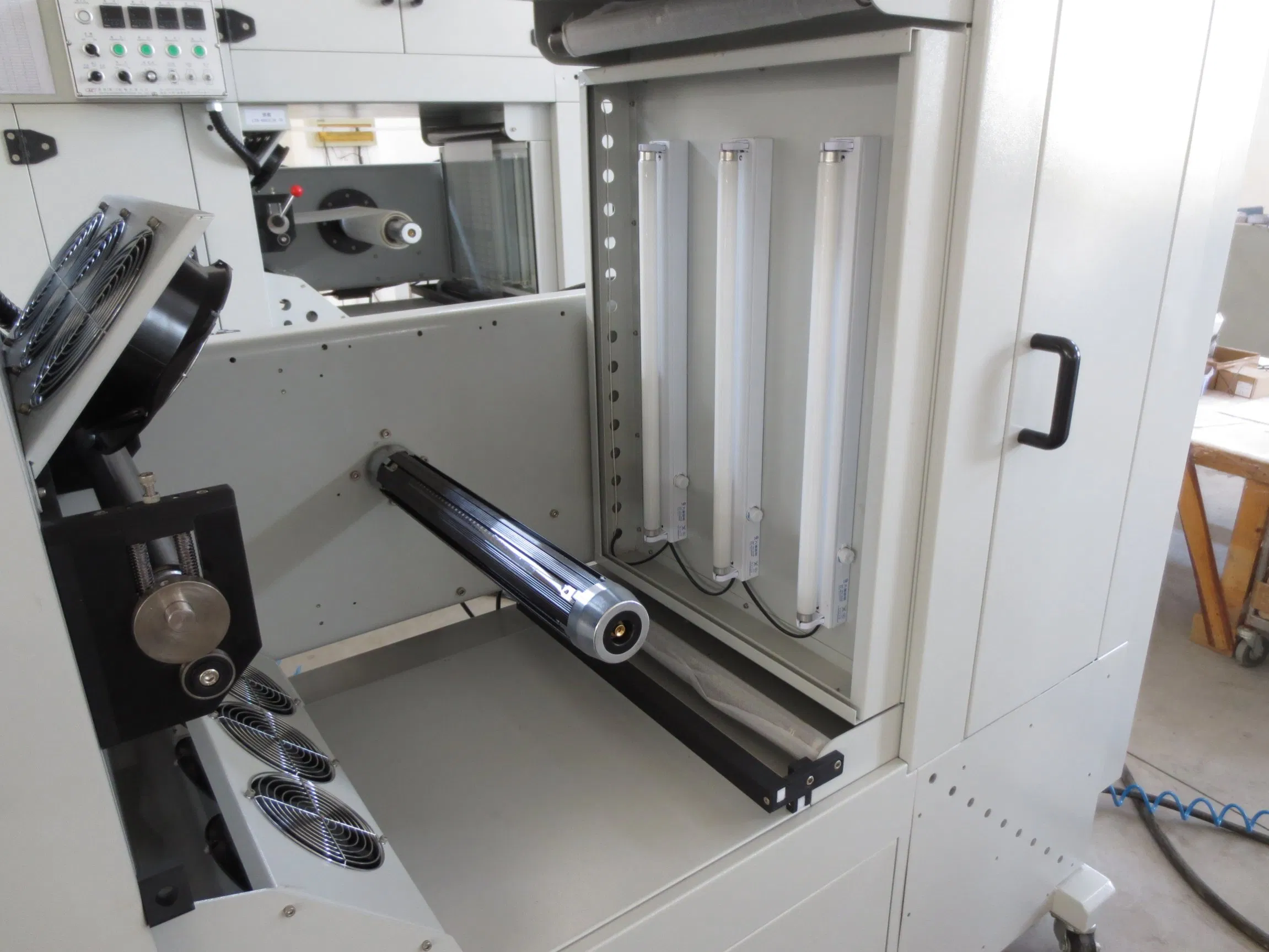 The printing machine table has vaccum to fix PET film in position to ensure printing accuracy. It is equipped with three photocell sensors for automatic registration.
