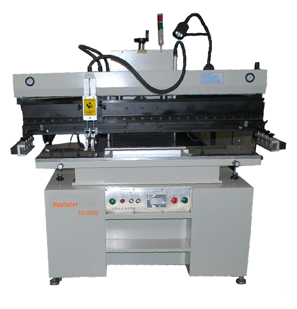 T12000D is the most reasonable semiautomatic SMT printing machine with high accuracy. It is specially suitable for high-accuracy batch production or making templet. The PCB Plate is fixed on a work platform which is flexible. The work platform is the same with single and double sides' circuit board. The adjustments of the PCB plate and the movement of the work platform are driven by the linear square guide-tracks, cooperated together with a double-frequency motor. Therefore exact motion and high accuracy of repetitions can be ensured. It is now the optimal choice to take the place of full automatic printing machine and decrease the cost of the production maximally.
